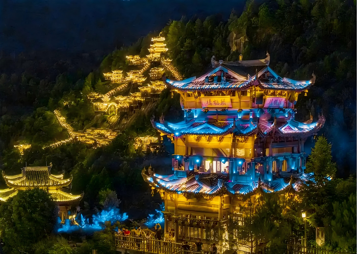 - Wangxian Valley – A 2.6B CNY fairy-tale cliff town: Explore Qingyun Bridge (micro-arch design), three-tiered waterfalls, White Crane Cliff (legend-linked to Nuwa mending the sky), and join night bonfire parties (weather permitting).
